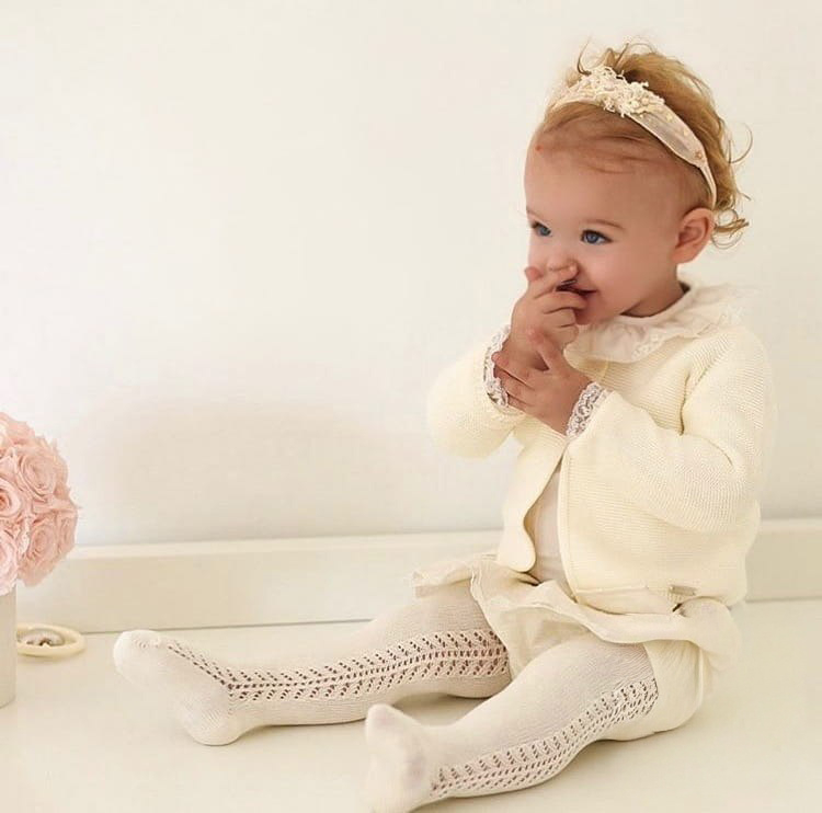 Laat je kleintje stijlvol én comfortabel voor de dag komen met deze elegante Cóndor Maillot Side Openwork in Cava / Créme (303). ✨